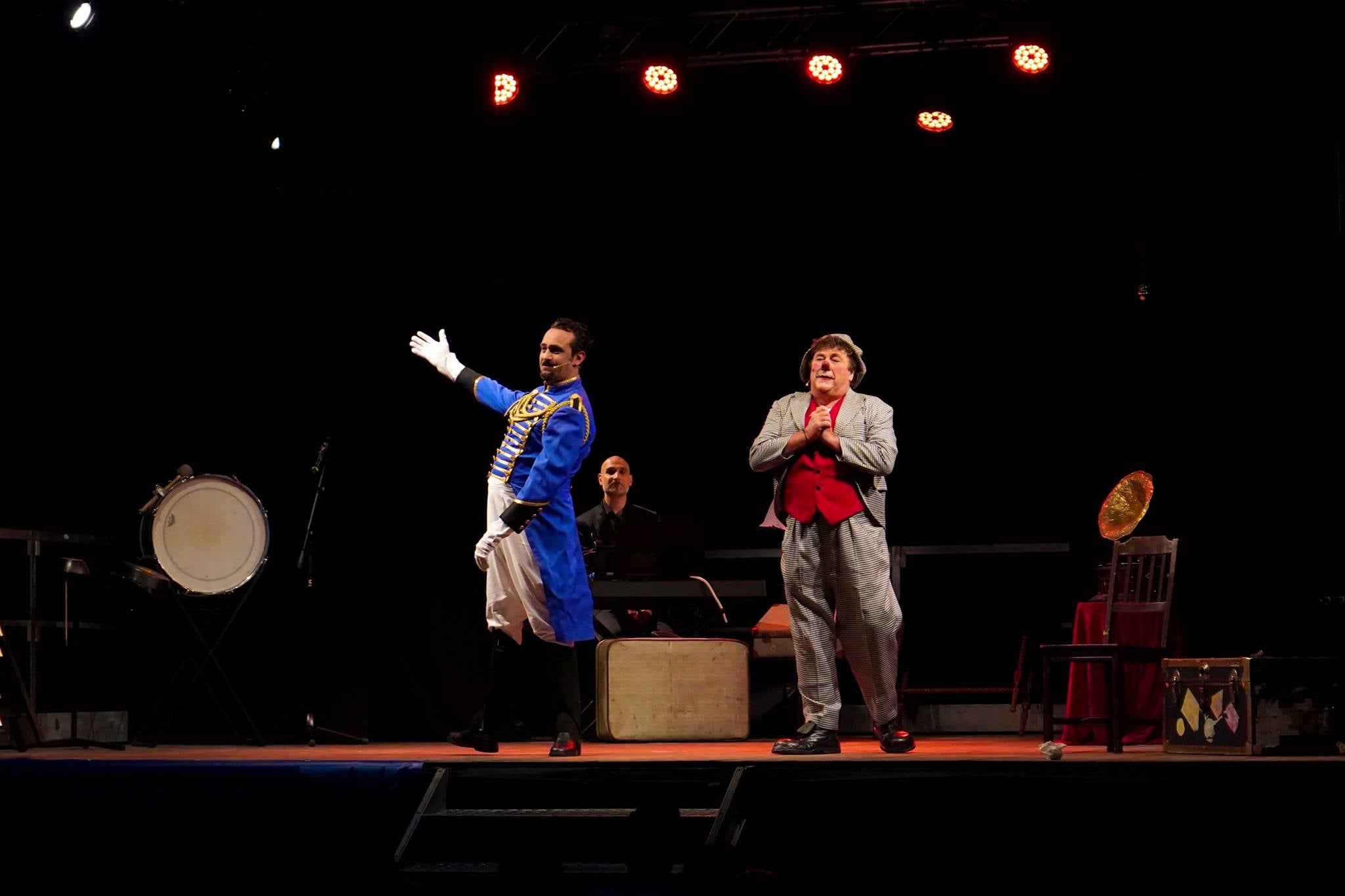 È un “augusto” dal naso rosso, ma anche un clown musicale, che suona innumerevoli strumenti e canta con voce piena e intonata. Nello spettacolo ci sono persino brevi momenti di danza e giocoleria, che danno l’idea della vastità della sua formazione circense.