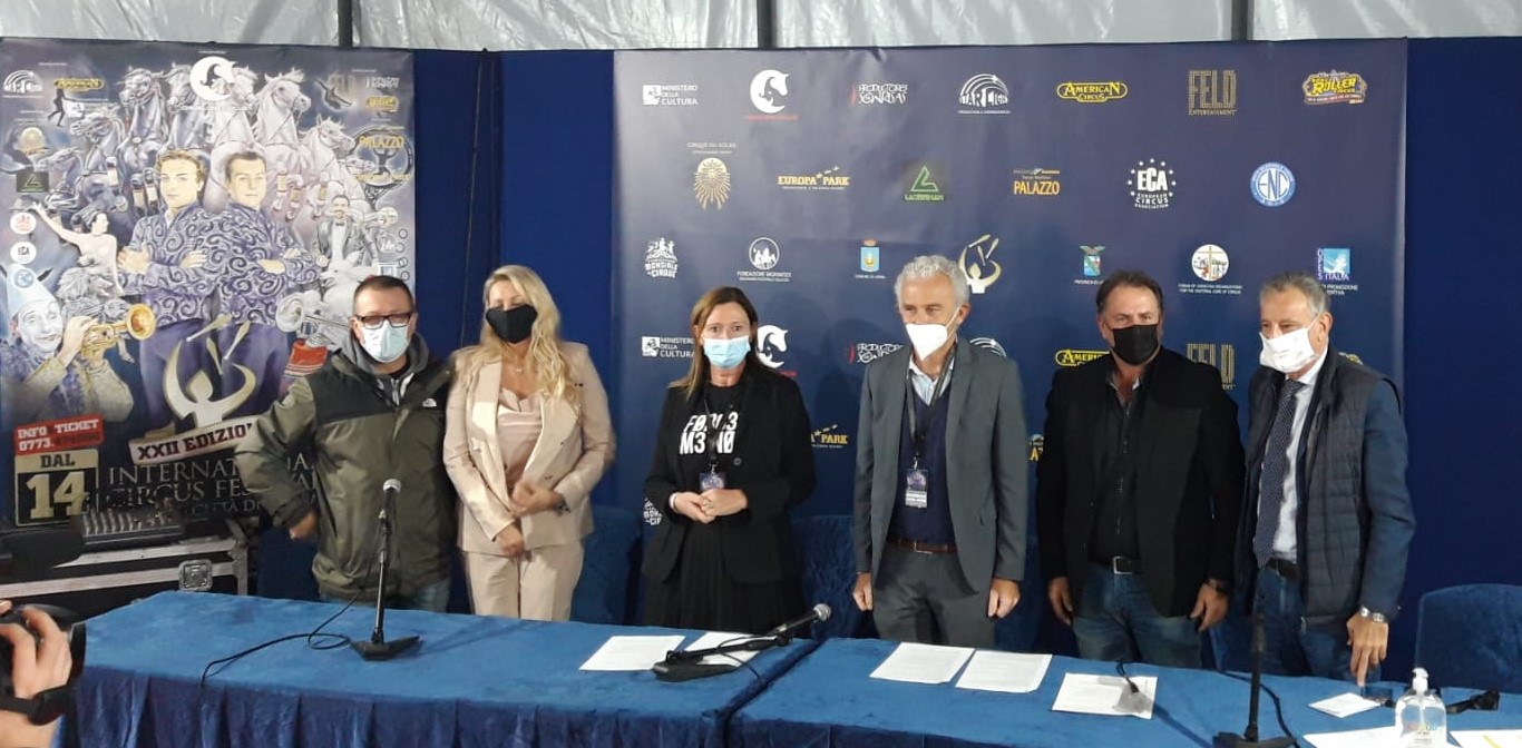 È stata presentata alla stampa nella tarda mattinata di oggi (lunedì 11 ottobre) la 22ª edizione dell’International Circus Festival of Italy. L’attesa manifestazione circense che si svolgerà da giovedì 14 a lunedì 18 Ottobre a Latina promuove lo spettacolo dal vivo e l’arte circense sotto ogni forma e vedrà sfidarsi, per aggiudicarsi l’ambito trofeo, i migliori artisti circensi selezionati dalle migliori scuole del mondo che si esibiranno davanti a due giurie divisi in due spettacoli diversi ogni giorno. Seduti al tavolo dei relatori Fabio Montico il presidente dell’Associazione Giulio Montico, il sindaco di Latina Damiano Coletta, l’assessora alle Attività produttive del Comune di Latina Simona Lepori, il dottore Enzo De Amicis, i due presentatori Andrea Giachi ed Alessia Dell’Acqua e il direttore di pista Tommy Cardarelli.