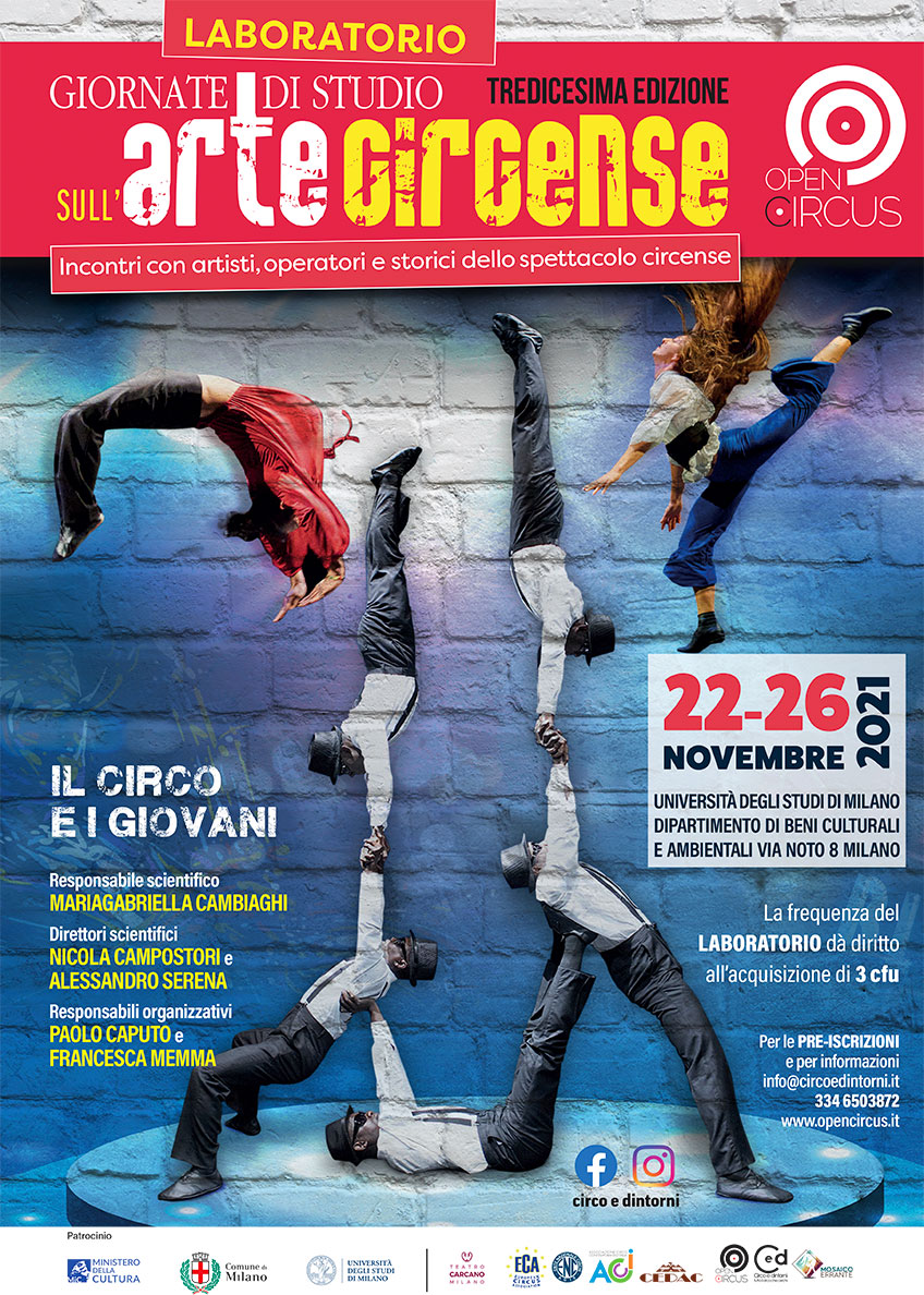 Dal 22 al 26 novembre l’Università Statale di Milano torna ad ospitare le Giornate di Studio sull’Arte Circense, presso il dipartimento di Beni Culturali e Ambientali in Via Noto 8, quest’anno dedicato a “Il circo e i giovani”. Le Giornate sono aperte a tutti, studenti dell’Ateneo e non solo, e per i partecipanti sarà possibile partecipare agli incontri con artisti, compagnie e professionisti dello spettacolo dal vivo provenienti da tutto il mondo.