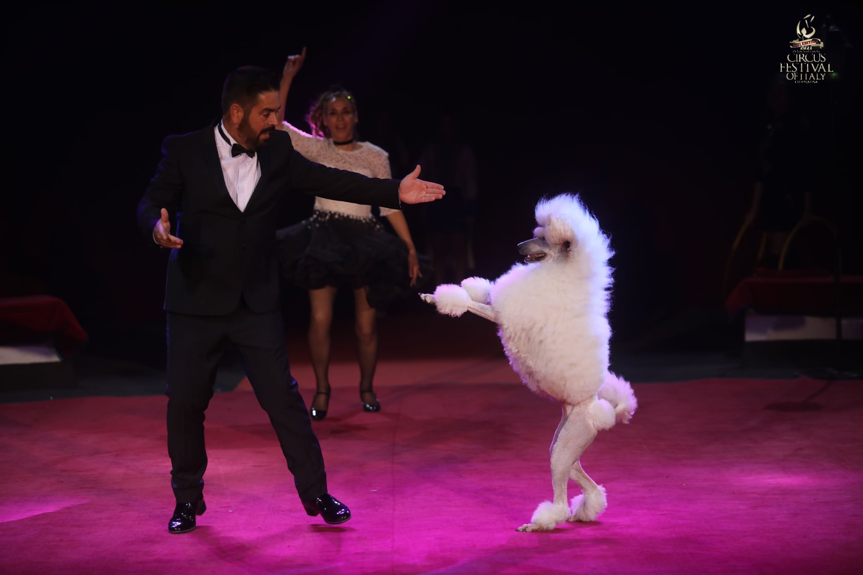 Alex e Romy portano in pista un numero originale con i cani come protagonisti, con l’obiettivo di mostrare la loro felicità durante la performance. Insieme ad Alexandro e Romy ci sarà anche la figlia Nicole che accompagnerà in pista Megan, Candy, Charlotte, Sophie e Coco Chanel, ovvero cinque barboni giganti che si divertono in pista a giocare insieme ai loro addestratori.