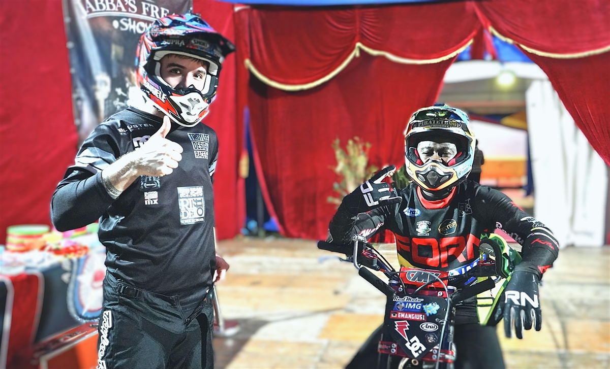 Ciò che non passa inosservato è il numero di chiusura dello spettacolo che rappresenta una vera novità in un circo italiano, un trio di motociclisti specializzati in motocross freestyle compie una serie di salti all’interno del tendone, un’esibizione probabilmente limitata per la grandezza dello chapiteau ma sicuramente di grande impatto, lo stupore degli spettatori è assicurato.